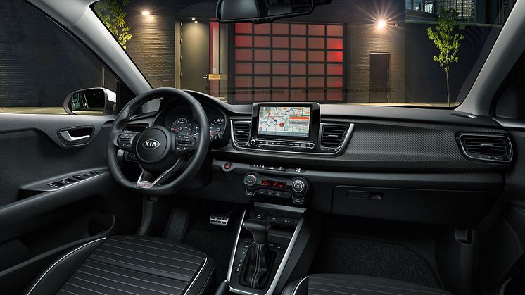 Kia Rio kommer med hög utrustningsgrad som standard som motsvarar nivån i större och dyrare bilar. Det uppgraderade telematiksystemet UVO Connect Phase II (GT Line) ger föraren tillgång till en rad ombordstjänster såsom aktuell trafikinformation, väderprognoser, intressanta platser (POI), bränslepriser och information om parkeringsmöjligheter - inklusive pris, plats och tillgänglighet. Via UVO-appen kan ägaren aktivera en rad funktioner och funktioner på distans, exempelvis skicka vägbeskrivningar till sin bil före en resa, lokalisera var bilen finns och status/diagnostik om den.