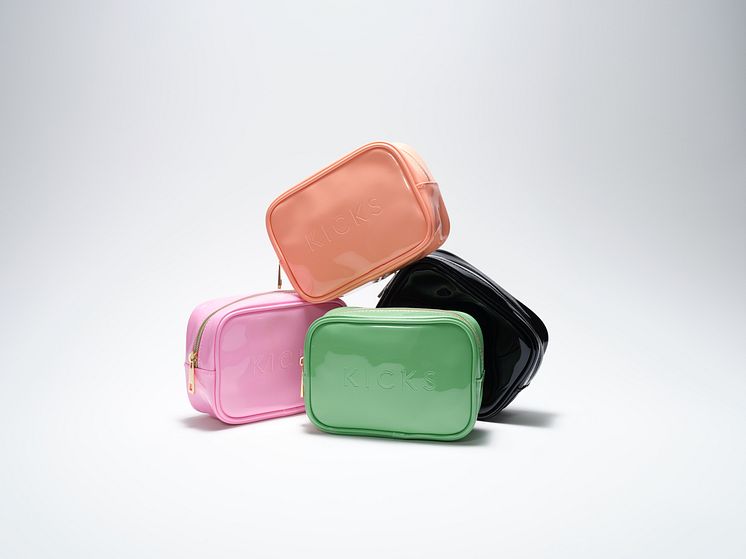 KICKS satsar stort på sitt egna varumärke KICKS Beauty med ny design och utökat sortimentet av skönhetsaccessoarer och verktyg. Här hittar du nu ett brett utbud av såväl håraccessoarer, smink- och ansiktsverktyg som necessärer i olika storlekar, material och färger. Inför halloween och julen utökas sortimentet ytterligare med lyxiga och eleganta håraccessoarer iform av både pärlbeströdda diadem, rosetter, hårband och scrunchies. För dekorativa och festliga naglar kommer både nail art stickers och press-on nails i olika mönster.