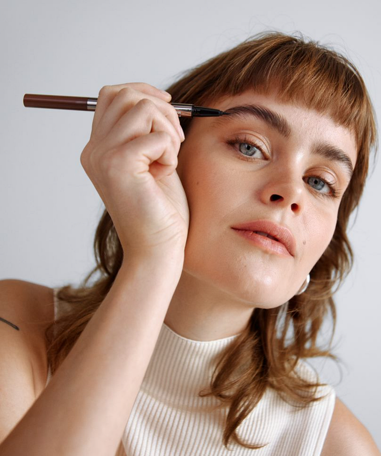 En ögonbrynspenna med dubbla ändar som enkelt skapar naturliga eller definierade bryn som håller hela dagen. Använd den krämiga pennspetsen för att forma, skugga och fylla i dina bryn. Genom att använda den tunnare bläckliknande filtspetsen i andra änden skapar man exakta hårliknande streck för att lägga till djup och dimension med hjälp av samma teknik som vid microblading. Produkten går även att använda för att skapa imiterade fräknar.