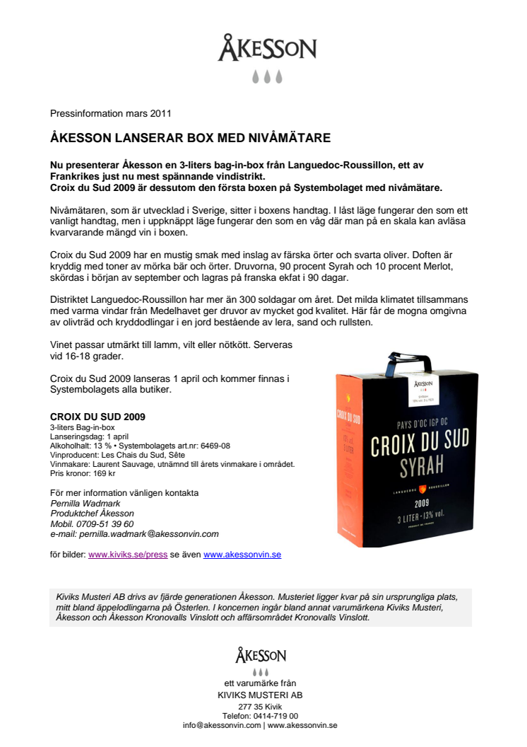 Croix du Sud 2009 är dessutom den första boxen på Systembolaget med nivåmätare.