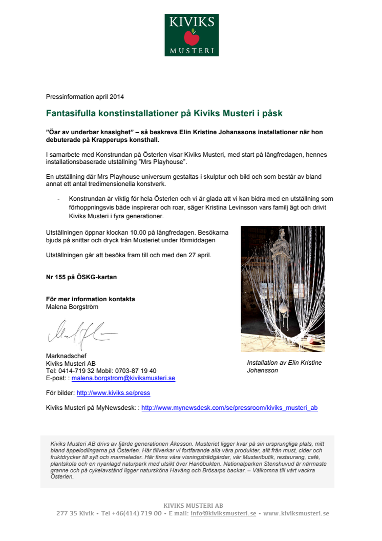 Fantasifulla konstinstallationer på Kiviks Musteri i påsk