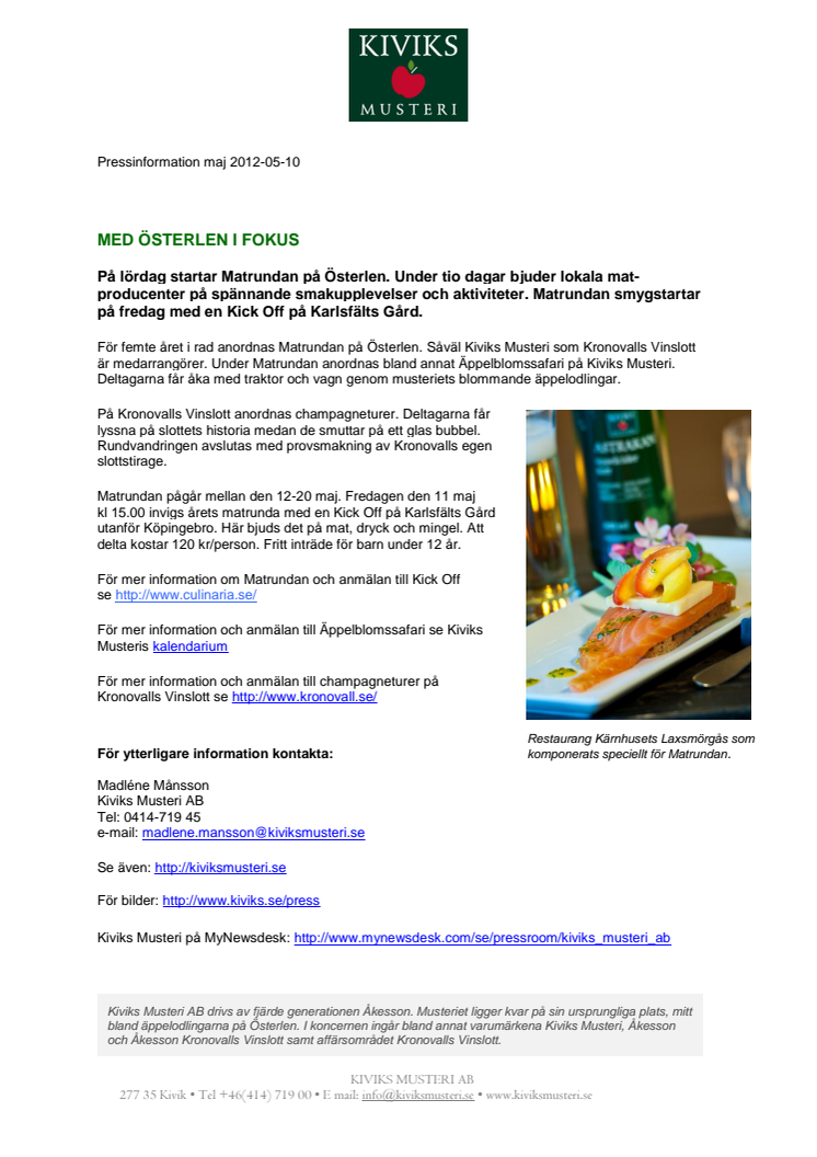 På lördag startar Matrundan på Österlen. Under tio dagar bjuder lokala matproducenter på spännande smakupplevelser och aktiviteter. Matrundan smygstartar på fredag med en Kick Off på Karlsfälts Gård.