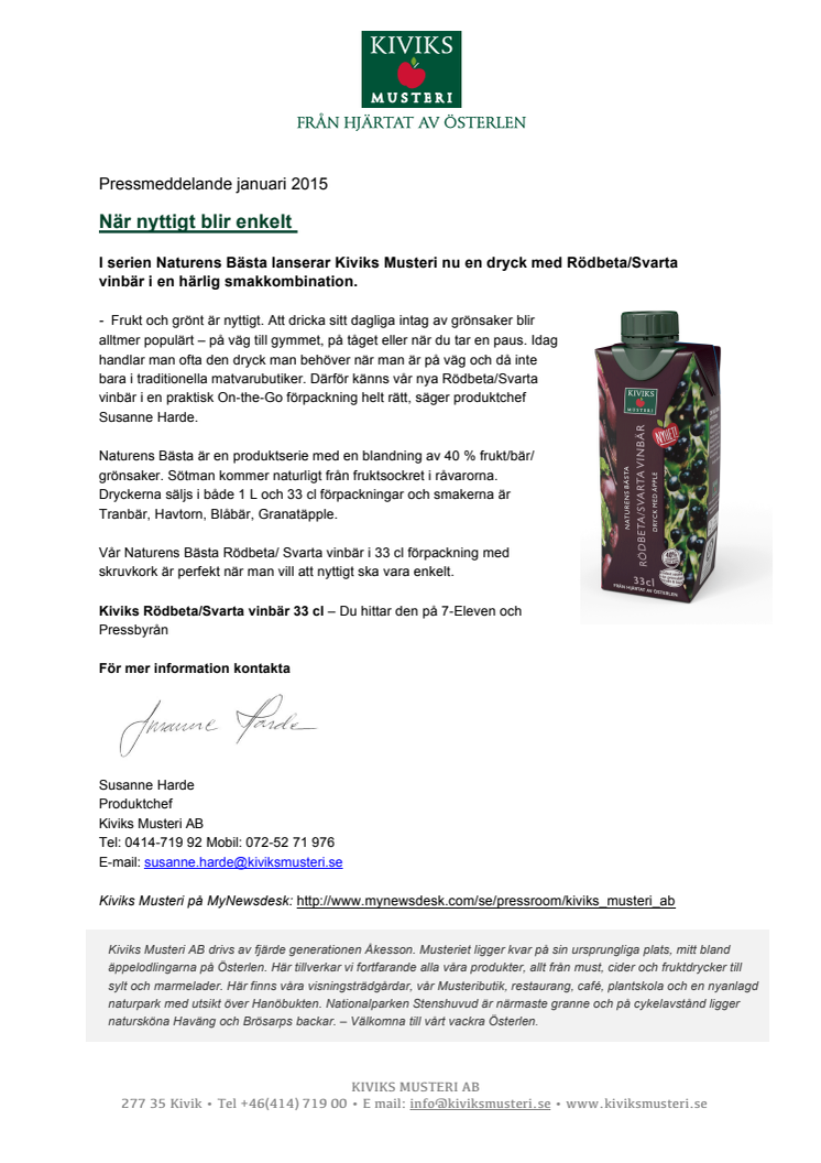 I serien Naturens Bästa lanserar Kiviks Musteri nu en dryck med Rödbeta/Svarta vinbär i en härlig smakkombination.