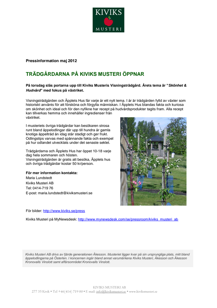 Trädgårdarna på Kiviks Musteri öppnar