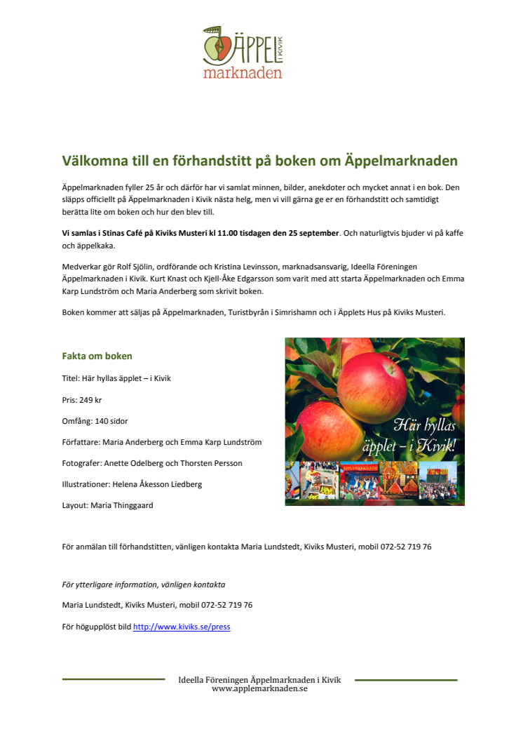 Äppelmarknaden fyller 25 år och därför har vi samlat minnen, bilder, anekdoter och mycket annat i en bok. Den släpps officiellt på Äppelmarknaden i Kivik nästa helg, men vi vill gärna ge er en förhandstitt och samtidigt berätta lite om boken och hur den blev till.