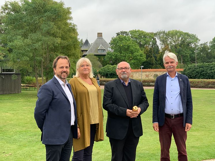 Jan Flemming Jensen , odlingschef Kviks Musteri, Ibrahim Tahir, forskare vid Sveriges Lantbruksuniversitet och mottagare av Guldäpplet 2020, Kristina Levinsson, ägare Kiviks Musteri