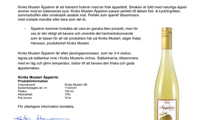 Äntligen är det dags för ett äppelvin i Systembolagets fasta sortiment. Den 1 april lanserades Kiviks Musteri Äppelvin i Systembolagets butiker. Det är ett halvtorrt, fruktigt vin med frisk äppel- smak som passar bra till lättare maträtter eller som aperitif.