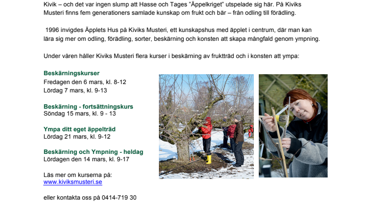 Under våren håller Kiviks Musteri flera kurser i beskärning av fruktträd och i konsten att ympa: