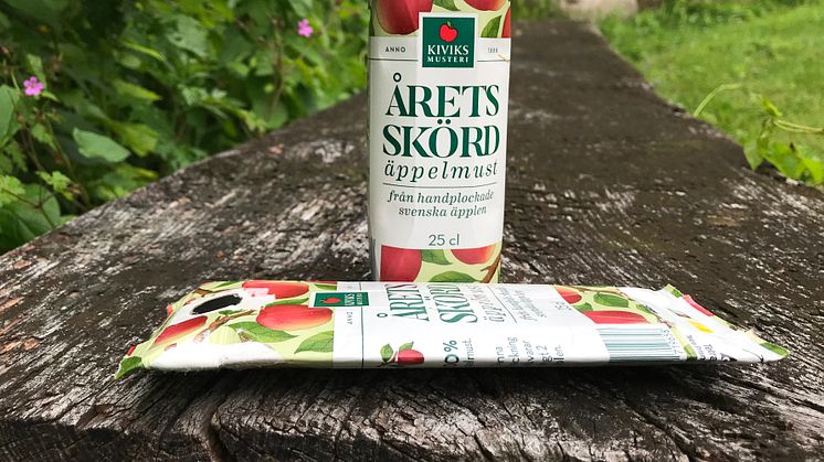 - Den miljösmarta förpackningstekniken gör att innehållet kan bevaras lika gott i flera månader helt utan tillsatser, vilket i sin tur minskar matsvinnet - hinner man inte konsumera den inom kort måste den inte slängas, säger Stina Andrén, hållbarhetschef på Kiviks Musteri.
