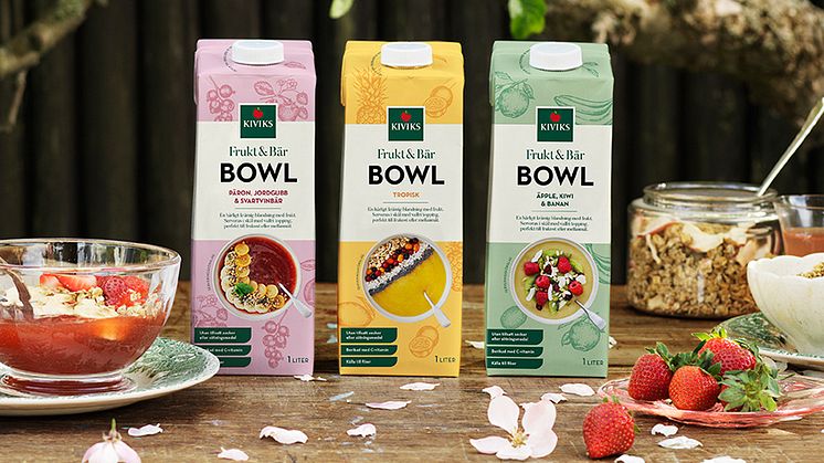 I takt med att intresset för växtbaserat mejeri ökar så breddar nu Kiviks Musteri sitt sortiment och hänger på den växande trenden med bowls. Nu lanseras tre sorter av härliga blandningar med frukt och bär i en krämig konsistens – perfekt att starta dagen med eller som ett gott mellanmål som ger energi hela dagen.