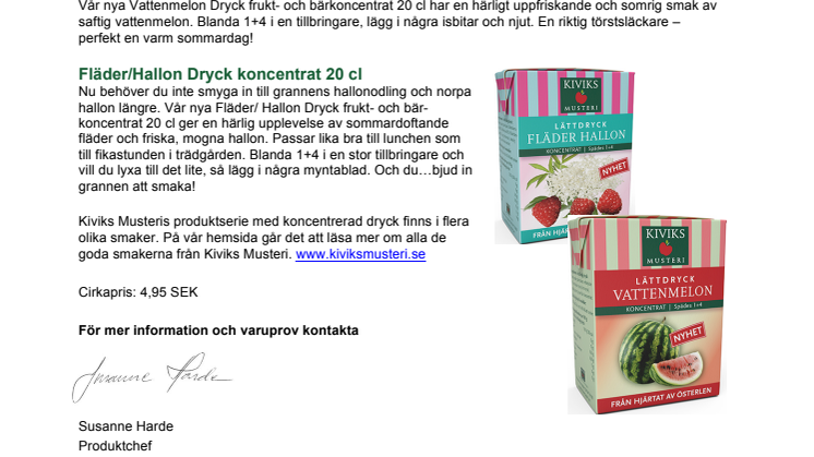 Alldeles lagom inför sommarlov och förhoppningsvis sol, bad och värme, presenterar vi två nya, härliga smaker i vår populära serie av koncentrerade lättdrycker med fruktiga smaker för hela familjen!