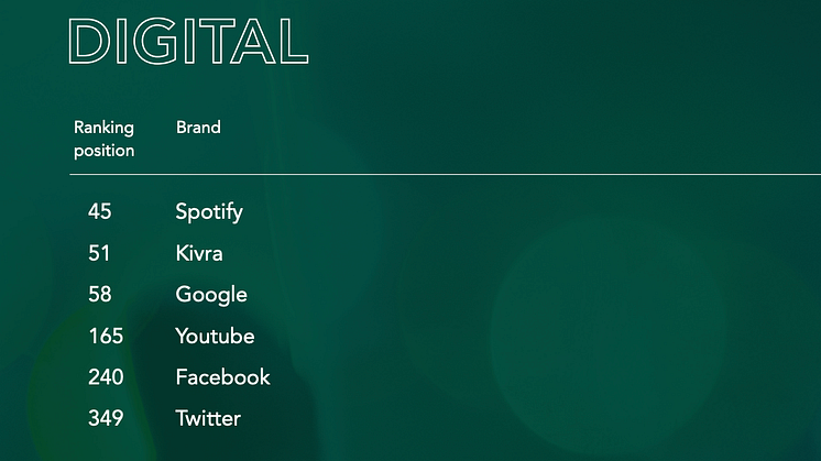 I den totala rankingen hamnar Kivra på plats 51. Totalt har 381 varumärken kvalificerat sig till Sustainable Brand Index 2020. Topp 10 ser ut enligt följande.