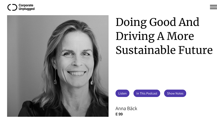 Corporate unplugged - intervju med Anna Bäck "Doing Good And Driving A More Sustainable Future"