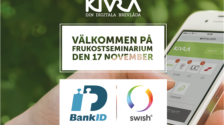 Kivra bjuder in till exklusivt frukostseminarium som beskriver två av de tjänster som snabbt blir vardagstjänster och bidrar till visionen om att Sverige skall bli bäst i världen på digitalisering.