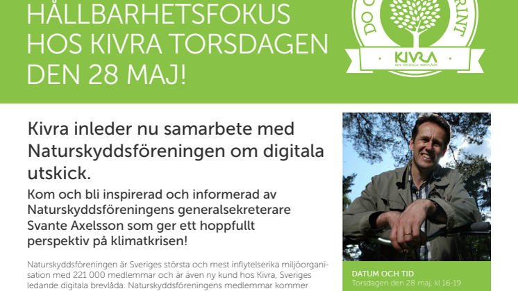 I morse var jag på en inspirerande frukostföreläsning med Naturskyddsföreningens generalsekreterare Svante Axelsson. Det kändes viktigt den här veckan när det talas mycket om miljön inför Earth Hour på lördag. 2015 beskrivs också av många som ett avgörande år för klimatfrågan med bland annat klimatmötet i Paris i december som en viktig händelse.