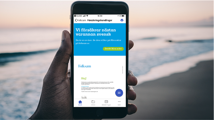 Exempel på hur Folksam använder kommunikationsytorna i Kivra för att stärka kommunikationen med sina kunder.