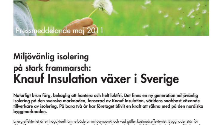 Miljövänlig isolering på stark frammarsch: Knauf Insulation växer i Sverige
