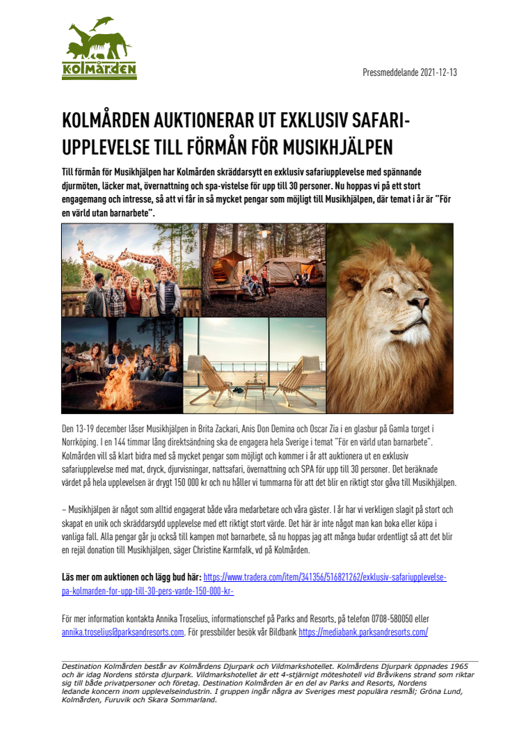 Kolmården auktionerar ut exklusiv safariupplevelse till förmån för Musikhjälpen.pdf