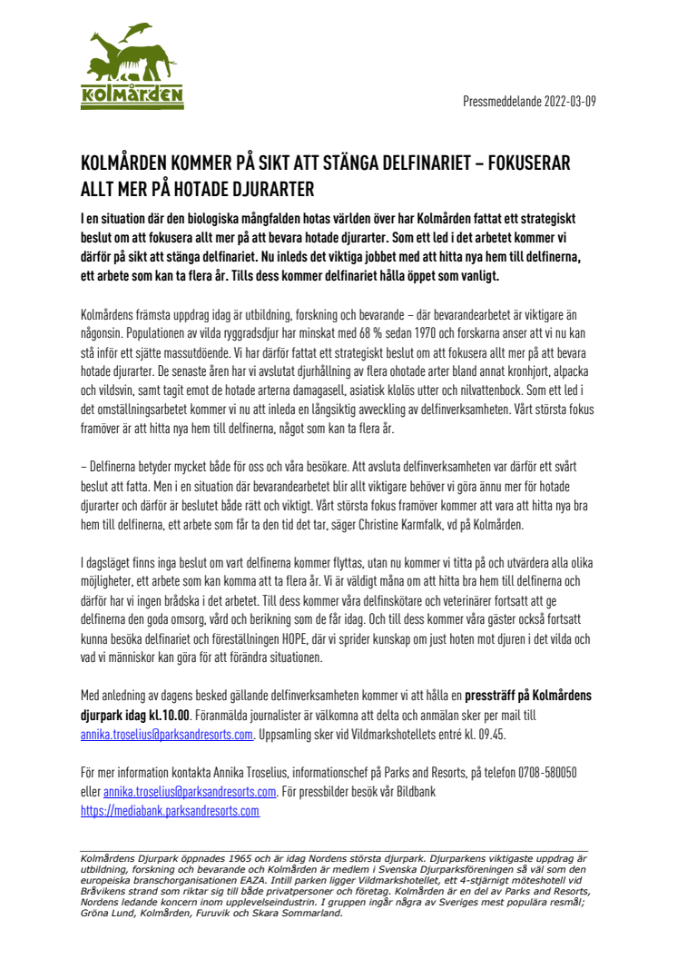 Kolmården kommer på sikt att stänga delfinariet - fokuserar allt mer på hotade arter.pdf