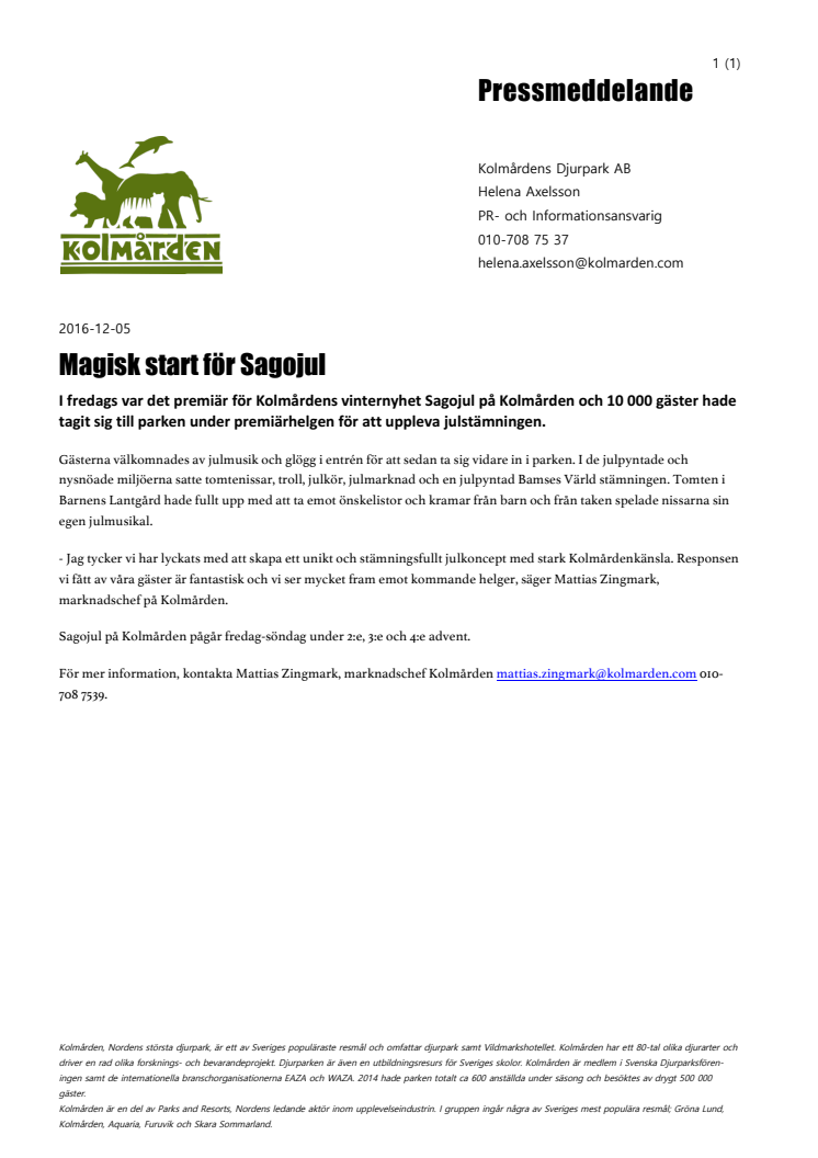 I fredags var det premiär för Kolmårdens vinternyhet Sagojul på Kolmården och 10 000 gäster hade tagit sig till parken under premiärhelgen för att uppleva julstämningen.