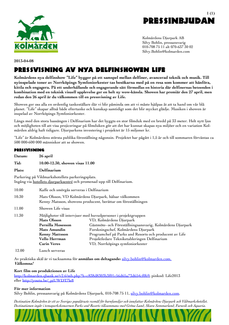 Pressinbjudan - Pressvisning av nya delfinshowen Life