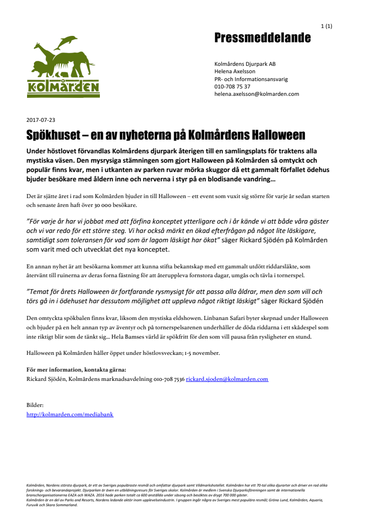 Spökhuset – en av nyheterna på Kolmårdens Halloween