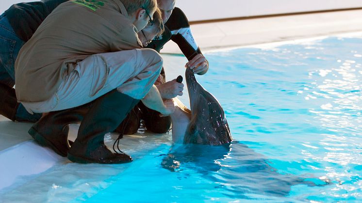 Delfin på Kolmården får sina tänder lagade med laser
