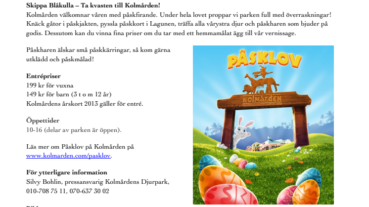 Läs mer om Påsklov på Kolmården på www.kolmarden.com/pasklov.