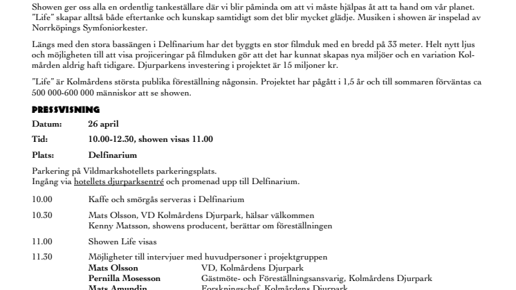Påminnelse: Inbjudan till pressvisning av nya delfinshowen life