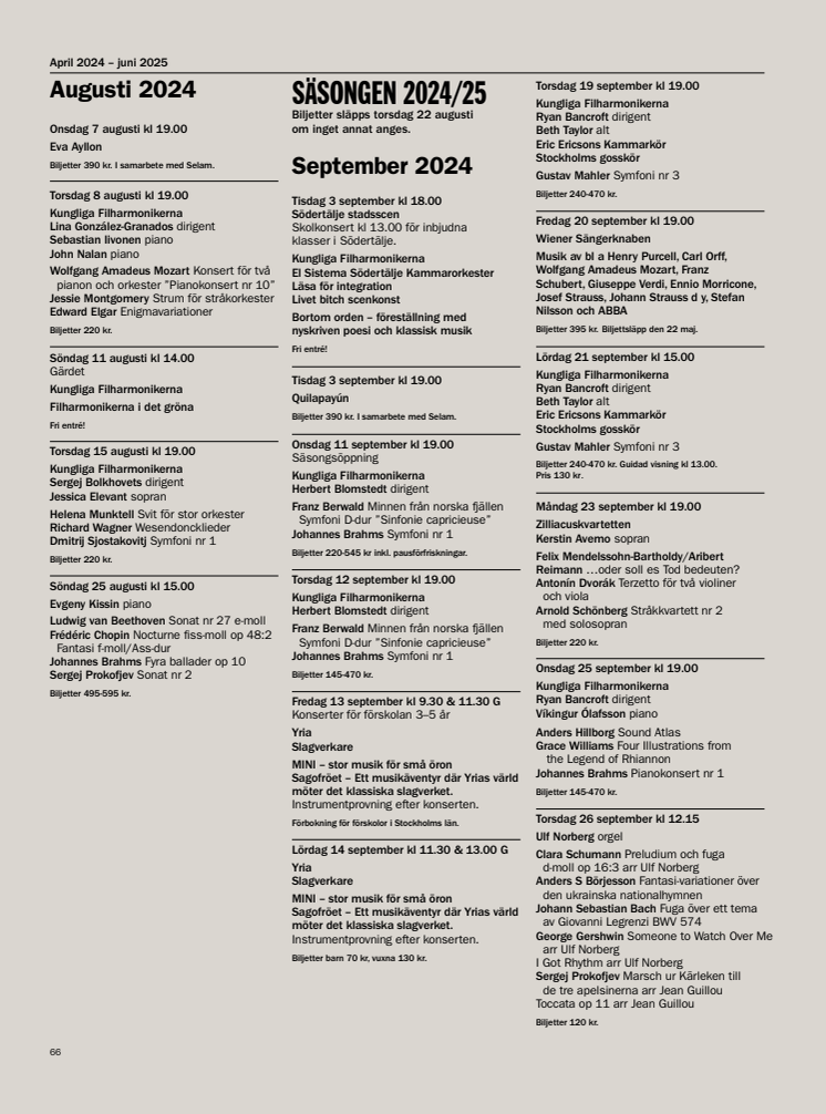 Alla konserter och konsertserier för säsongen 2024/25 är nu publicerade på Konserthusets hemsida.