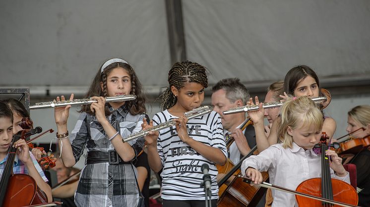 Sommarens viktigaste konsert. På lördag bussar vi över Kungliga Filharmonikerna till Estrad i Södertälje. Det är återigen dags för El sistema-konsert, då filharmonikerna spelar tillsammans med barn som sedan tre år lär sig spela olika instrument enligt El Sistema-modellen. Med ett 80-tal barn och lika många filharmoniker blir det en jätteorkester som tar plats på scenen i Södertälje. Fri entré!