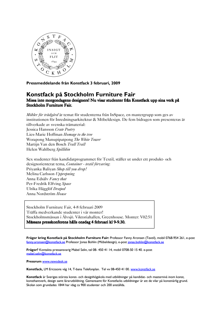 Missa inte morgondagens designers! Nu visar studenter från Konstfack upp sina verk på Stockholm Furniture Fair.