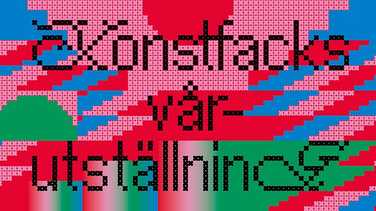 Linn Henrichson och Lars Høie, båda alumner från Konstfacks masterprogram i visuell kommunikation, vann årets tävling om vårutställningens grafiska koncept. I detta utforskas kopplingarna mellan vävning – en metafor för skolan som en plats för lärande och relationsskapande – korsstygn, broderi och tidig internetpixelestetik.