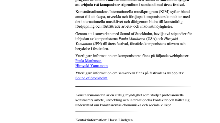 • Internationellt samverkansprojekt Sound of Stockholm