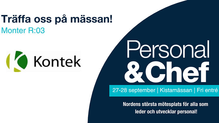 Den 27-28 september är det äntligen dags för Nordens största mötesplats för HR-proffs, chefer och ledare - Personal & Chef-mässan på Kistamässan i Stockholm. Kontek är stolta över att vara en del av detta spännande evenemang, där vi kommer att dela med oss av vår expertis inom HR och digitaliserad lönehantering.
