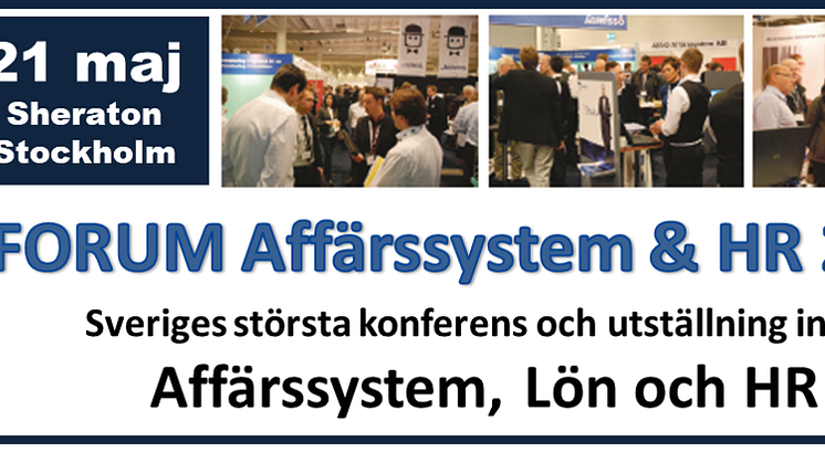 Mässan Forum för Affärssystem & HR är Sveriges största konferens och utställning inom Lön, HR och Affärssystem. Vi på Kontek kommer vara en av utställarnapå mässan som går av stapeln den 21 maj på Hotell Sheraton i Stockholm. Mässan arrangeras för 16:e året i rad och som tidigare samlas de ledande leverantörerna till en gemensam konferens där du som besökare under en dag har möjlighet att besöka ett stort antal intressanta och spännande systempresentationer och föreläsningar.