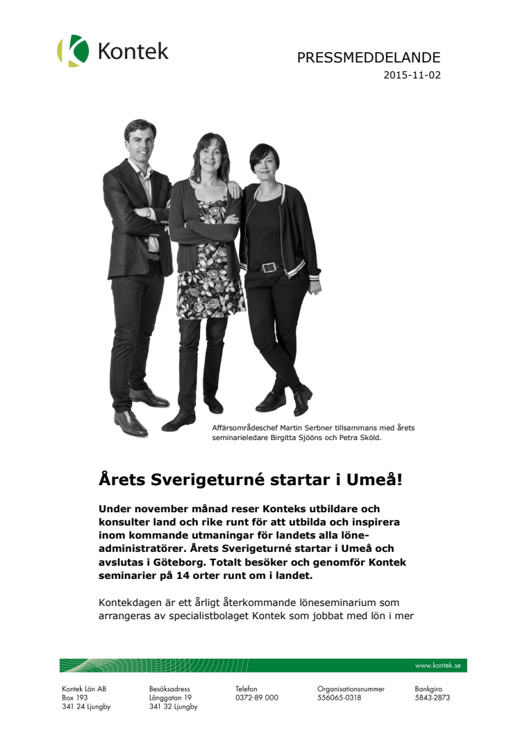 Kontek är ett av Sveriges ledande specialistbolag inom löneadminstration. Företaget erbjuder både outsourcing och programvara för lönehantering till små och medelstora företag samt utbildningar, konsultation och andra löneadministrativa tjänster. Kontek är privatägt, har cirka 80 alerta och kunniga medarbetare och har kontor i Stockholm, Göteborg, Malmö och huvudkontor i Ljungby. www.kontek.se