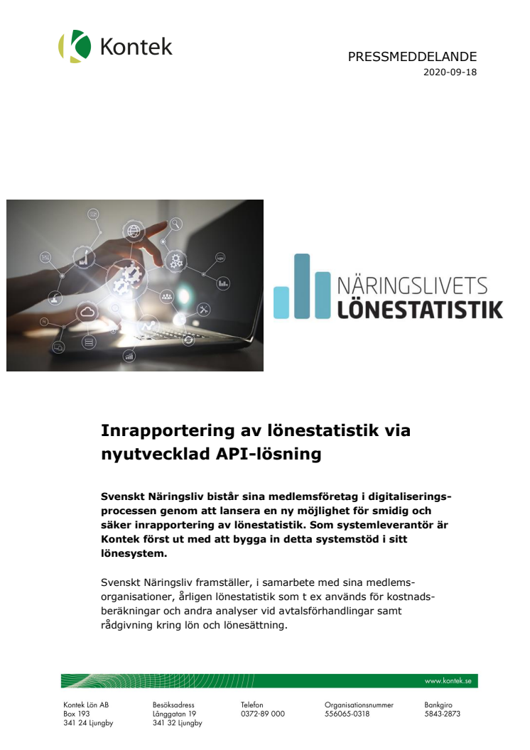 Svenskt Näringsliv bistår sina medlemsföretag i digitaliserings- processen genom att lansera en ny möjlighet för smidig och säker inrapportering av lönestatistik. Som systemleverantör är Kontek först ut med att bygga in detta systemstöd i sitt lönesystem.
