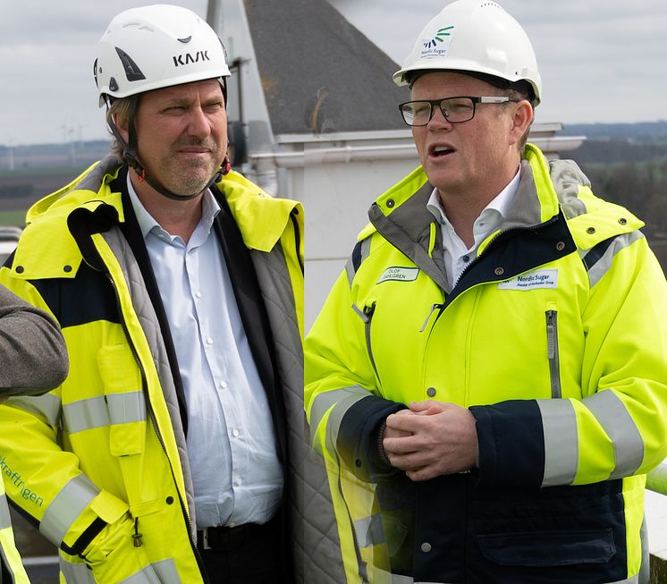 Fredrik Fackler, Kraftringen och Olof Dahlgren, Nordic Sugar på taket till Örtoftaverket under ett studiebesök från Energimyndigheten (montage)