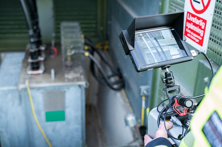 Svensk Linjebesiktning undersöker en av Kraftringens nätstationer efter korona