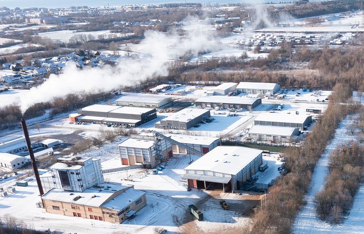 Vy över Kraftringens kraftvärmeverk Återbruket i Lomma