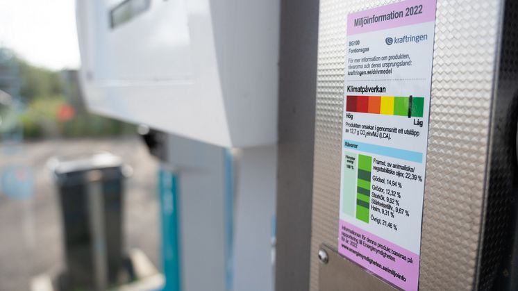 Nu har siffrorna för miljöpåverkan uppdaterats hos alla landets drivmedelsleverantörer. För Kraftringens del betyder det att våra tankstationer för fordonsgas märkts upp med bränslets miljöpåverkan och vilka källor det framställts från. Siffrorna för 2022 visar lägre klimatpåverkan än elbilsladdning.