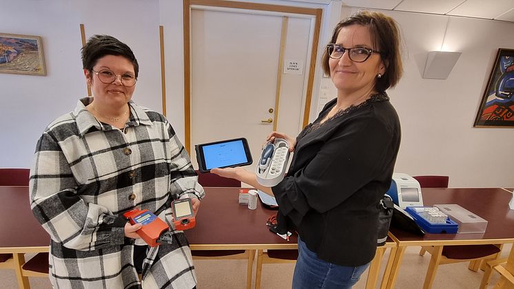 – Vi har båda jobbat länge som sjuksköterskor och förstår redan nu att situationen för patienten blir lugnare. Alla data som vi mäter går in i ett digitalt system som är direktkopplat till hälsocentralens läkare, säger Petra Lindström och Camilla Westin.