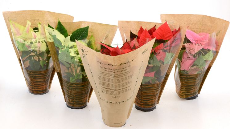 Sorten heter ’Christmas Eve’. De 14 000 julstjärnesticklingarna planterades i juli och levereras nu som färdiga blommor av Mäster Grön ut till butikerna.