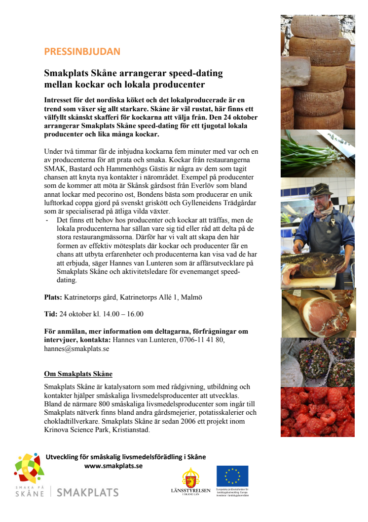 Intresset för det nordiska köket och det lokalproducerade är en trend som växer sig allt starkare. Skåne är väl rustat, här finns ett välfyllt skånskt skafferi för kockarna att välja från. Den 24 oktober 2011 arrangerar Smakplats Skåne speed-dating för ett tjugotal lokala producenter och lika många kockar.