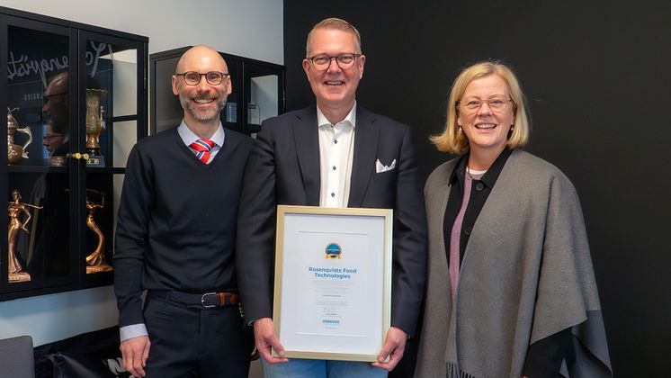 Niclas Persnil, business designer på Krinova, Stefan Björk, vd på Rosenqvists Food Technologies samt Ulrika Hasselgren, vd på Krinova.