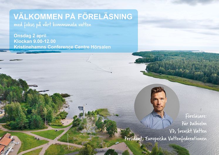 Svenskt Vattens VD Pär Dalhielm kommer att hålla föredrag om framtida kostnader för kommunalt vatten och avlopp, nödvändiga investeringar och vikten av hållbar vattenanvändning. Hans perspektiv berör inte bara VA-sektorn utan också hur vi som samhälle måste tänka långsiktigt kring vattenhantering. Vid föreläsningen deltar berörda tjänstepersoner samt politiker inom Kristinehamns kommun.
