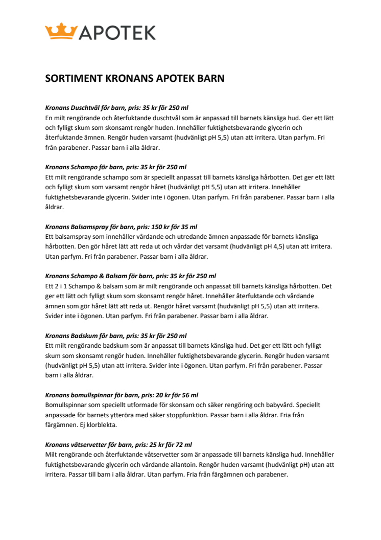 KRONANS BARNSORTIMENT - PRODUKTER & PRISER