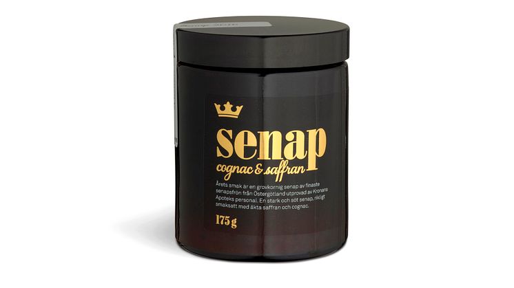I år utökar Kronans Apotek sitt sortiment med en senap med en smak av cognac och saffran. Kronans Apoteks medarbetare har varit med och provat ut receptet.