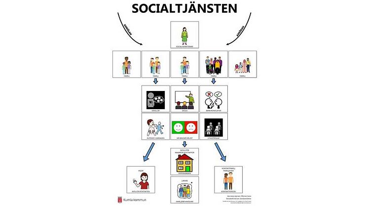Socialtjänsten arbetar kontinuerligt med att utveckla metoderna för att öka barns delaktighet än mer. Under hösten har de tagit fram ett bildstöd som visar socialtjänstens utredningsprocess i bilder. Från det att en anmälan eller ansökan kommit in, via ett antal mellanprocesser till att man kan avsluta kontakten eller på annat sätt arbetar vidare för barnet eller ungdomens bästa.